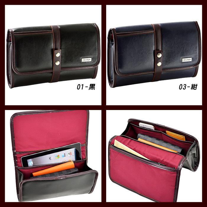 ◆ハンディなカブセタイプのメンズクラッチバッグ。フラップホックが2段式で容量の増減に対応できます。