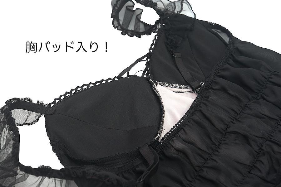 アイマスクとベビードールがセットになった「poppy doll(ポピードール)」シリーズ。白いポピーの花言葉は「眠り」。ねこ耳型のアイマスクと、ブラックのハート柄チュール生地とベビーピンクの組み合わせが女の子の気持ちをアップ。撮影する時、お泊りでお喋りする時には、ヘッドドレスみたいに付けるのもオススメです。肩紐調節有り。背中はシャーリングゴム仕様。【対応サイズ】Ladies/身長155~165cm、B~90cm、W~70cm、H~96cm【洗濯表示】洗濯機不可、弱い手洗い可、塩素系漂白剤による漂白不可、アイロンは中温で当て布使用、ドライクリーニング不可 ※クリーニングはお避けください。色落ちの可能性がありますので、他のものとの洗濯はお避け下さい。アイロンは、当て布使用して下さい。【商品について注意事項】※生産時期やロット、デザインによって、多少サイズ・色・柄が異なる場合があります。摩擦や水濡れにより色移りする恐れがありますのでご注意ください。※商品画像は可能な限り実物の色に近づくよう調整しておりますが、お使いのモニター設定、お部屋の照明等により実際の商品と色味が異なって見える場合がございます。又、同じ商品の画像でも、撮影環境によって画像の色に差異が生じる場合がございます。【製造元】株式会社クリアストーン セット内容:アイマスク、ベビードール、ガーターリング 着丈:49cm(背中心) 開き:かぶり 実寸:B/66~92cm 、W/60~74cm モデル(身長):篠原みなみ(159cm)