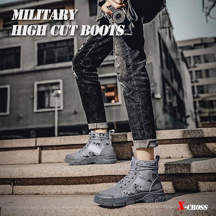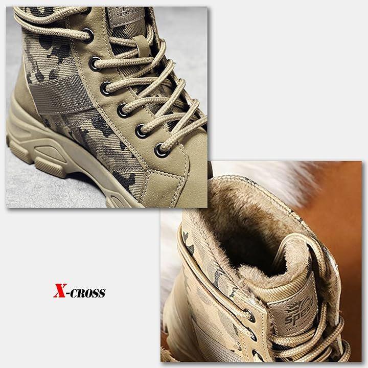 [X-cross(クロス)] ハイカットブーツ メンズ 防寒 迷彩 ミリタリーブーツ ボア 裏起毛 裏ボア スニーカー ショートブーツ カジュアル アウトドア ファッション おしゃれ かっこいい サバゲー アーミー 起毛 防寒靴 暖かい 冬 ウィンターブーツ 歩きやすい 靴 ウォーキング 通勤 通学 バイク 厚底 脚長 身長up 大きいサイズ 大人 キャンプ 釣り ウィンターブーツ 迷彩ブーツ *程よいボリュームのあるソールで、安定感もありながらスタイルも綺麗に見せでマルチに活躍するミリタリーブーツが登場しました。
