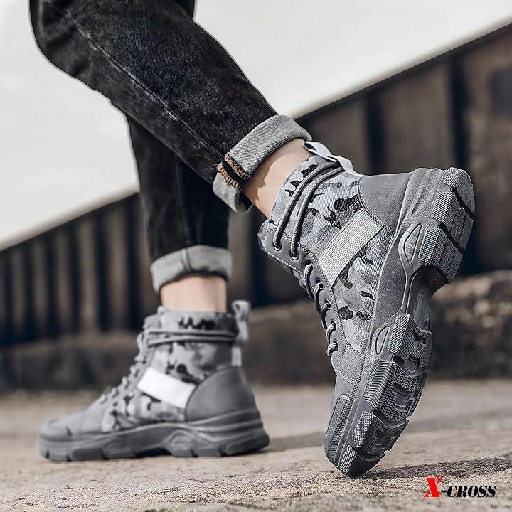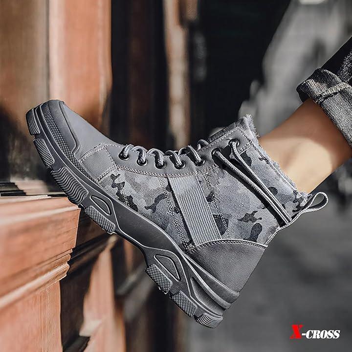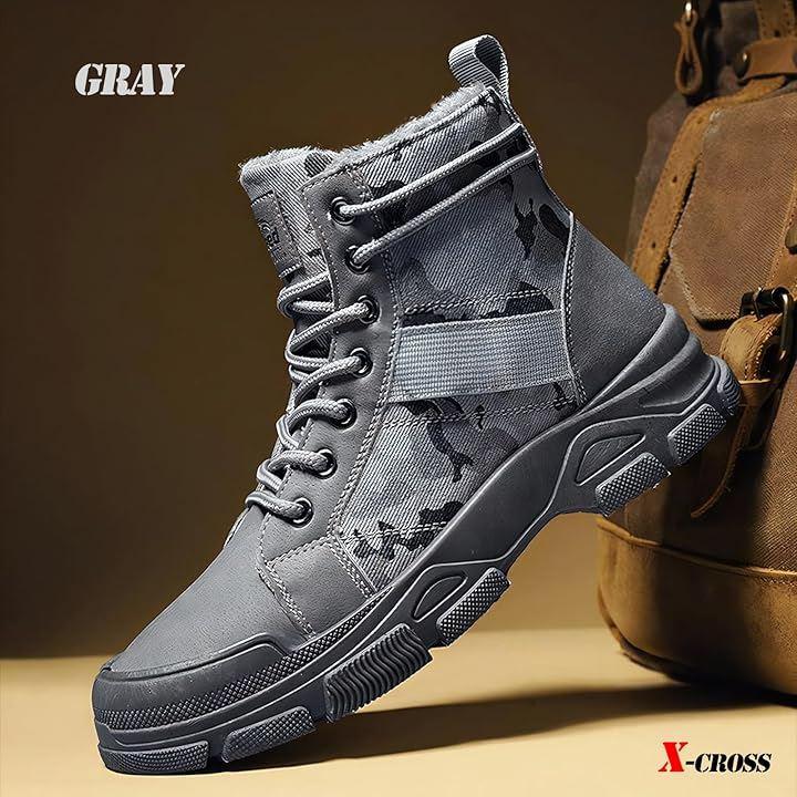 [X-cross(クロス)] ハイカットブーツ メンズ 防寒 迷彩 ミリタリーブーツ ボア 裏起毛 裏ボア スニーカー ショートブーツ カジュアル アウトドア ファッション おしゃれ かっこいい サバゲー アーミー 起毛 防寒靴 暖かい 冬 ウィンターブーツ 歩きやすい 靴 ウォーキング 通勤 通学 バイク 厚底 脚長 身長up 大きいサイズ 大人 キャンプ 釣り ウィンターブーツ 迷彩ブーツ *程よいボリュームのあるソールで、安定感もありながらスタイルも綺麗に見せでマルチに活躍するミリタリーブーツが登場しました。