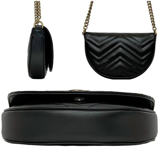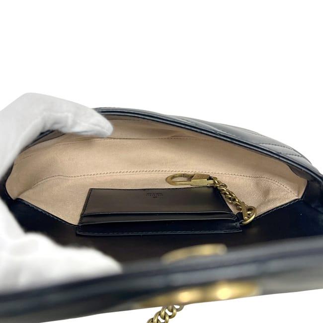☆---- 商品について ----☆グッチ チェーン ショルダーバッグ f-24564 ブラック GGマーモント 746431 未使用 美品 レザー Sランク 0416 GUCCI クロスボディ 黒 フラップ GG ステッチ 斜め掛け マグネット ゴールド金具 レディース 女性 チェーンバッグ ブランド 本物 鑑定済み