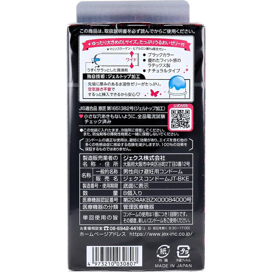 うるおいゼリー付きで、はじめてでも安心。ウルウルが長続きするので、うるおい不足に悩む方におすすめ。●ゆったり大きめのLサイズ。●たっぷりうるおいゼリー付(マリンコラーゲン・ヒアルロン酸Na配合のモイストゼリー)。●優れたフィット感のラテックス製。●先端にゼリーを留める独自技術「ジェルトップ加工」を採用しています。女性側に厚みのある水溶性ゼリーがたっぷりなので、性交時のうるおい不足による不快感を感じる方におすすめ。●空気抜き不要で装着カンタン。●小さな穴あきもないように、全品電流試験チェック済み。●ナチュラルタイプ。●ブラックカラー。