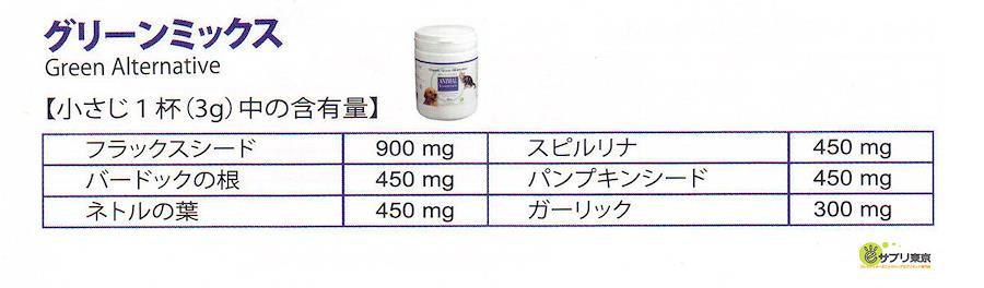[名称] 動物用栄養補助食品[原材料] フラックスシード、バードックの根、ネトルの葉、スピルリナ、パンプキンシード、ガーリック(オーガニック栽培)[内容量] 90g×2個[特長] グリーンミックスは、オーガニック栽培された必須脂肪酸の豊富なハーブのみを厳選、ミックスして作ったペット用ハーブサプリメントです。