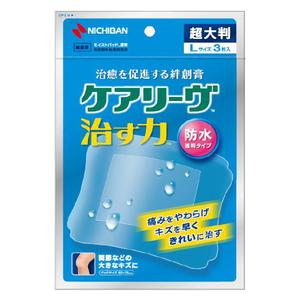 ■商品概要メーカー:ニチバン商品名:ケアリーヴ 治す力 CNBCHO3L Lサイズ(3枚入)区分:医療機器内容量:3枚商品概要:【医療機器】大きいキズを水から守り、早くきれいに目立たず治せる。JANコード:4987167099497商品コード:074906272