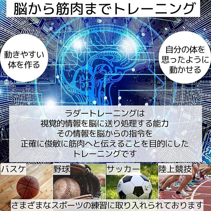 「脳から筋肉までトレーニング」ラダートレーニングは、視覚的情報を脳に送り処理する能力、その情報を脳からの指令を正確に俊敏に筋肉へと伝えることを目的にしたトレーニングで、繰り返し行うことで運動神経を養うことができます。