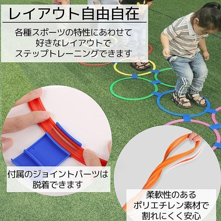 「レイアウト自由自在」付属のジョイントパーツは脱着可能、各種スポーツの特性にあわせて、好きなレイアウトでステップトレーニングできます。