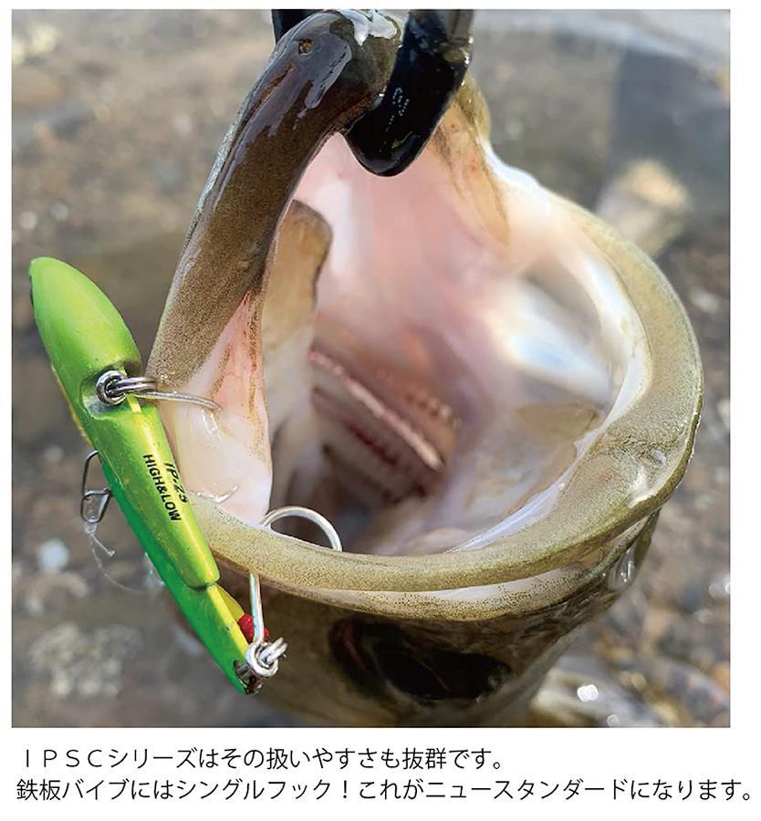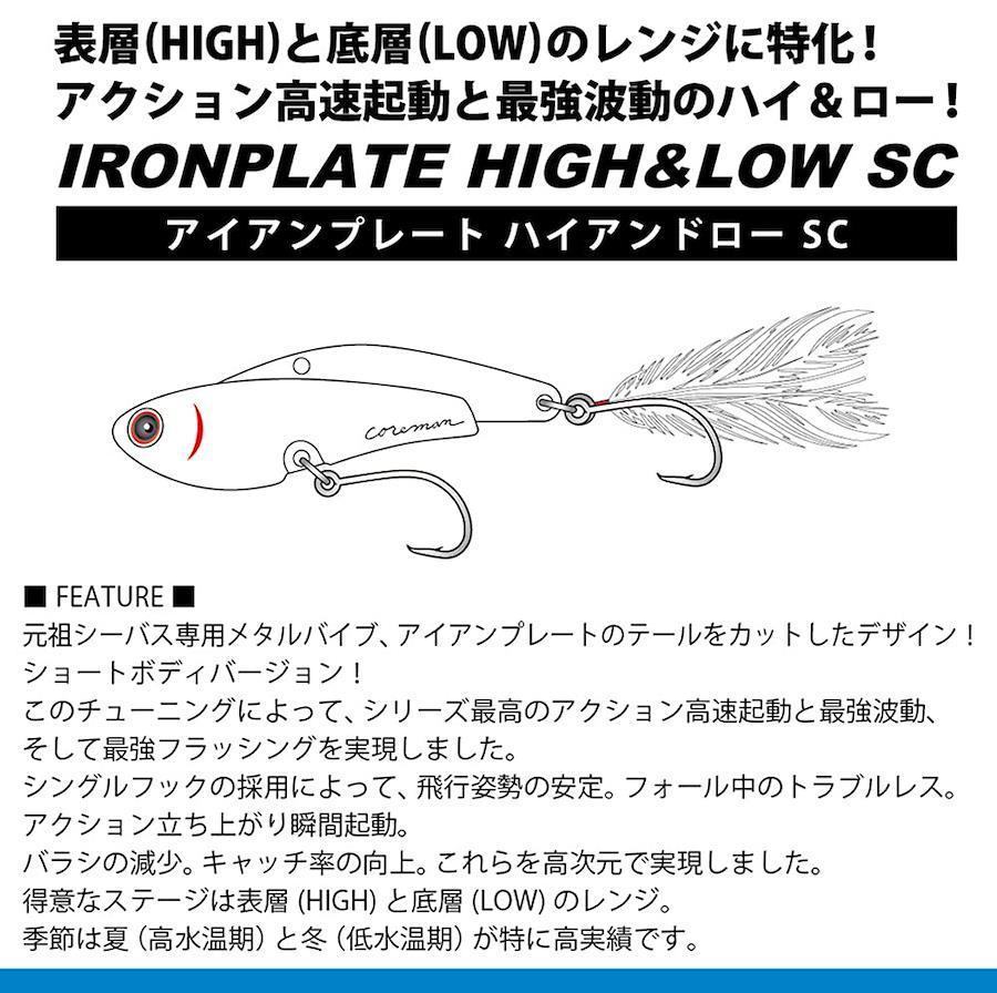 シーバスゲームにおける鉄板バイブレーションのカテゴリーを作り上げた「アイアンプレートシリーズ」でボディのテール部をカットし、フェザーウィングを取り付けた「ショートボディモデル ハイアンドローSC」より、遠投・深場の釣りに特化したヘビーウェイトモデルが登場!