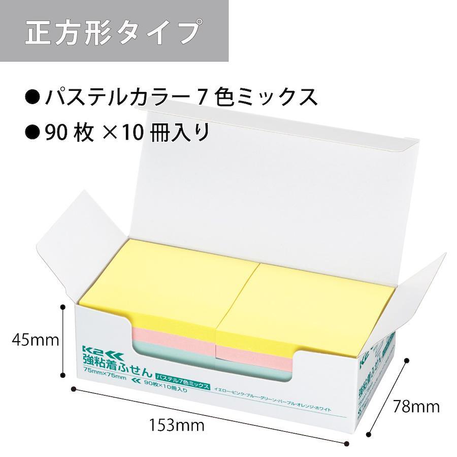 商品仕様●サイズ:正方形サイズ/75mm×75mm●枚数:90枚×10冊入り●パステルカラー7色ミックス●強粘着タイプ●ふせん紙質:色特殊紙●紙箱入り