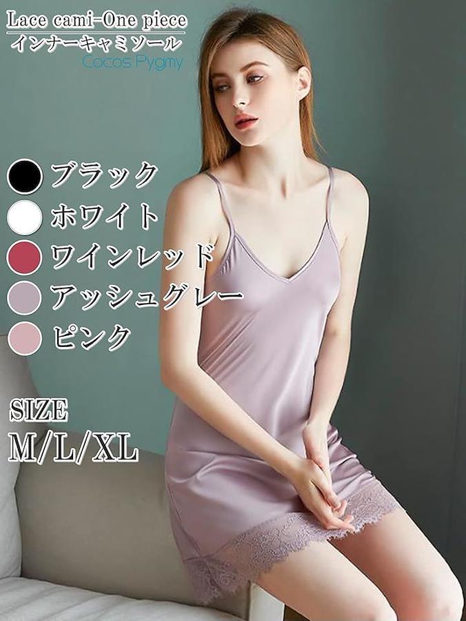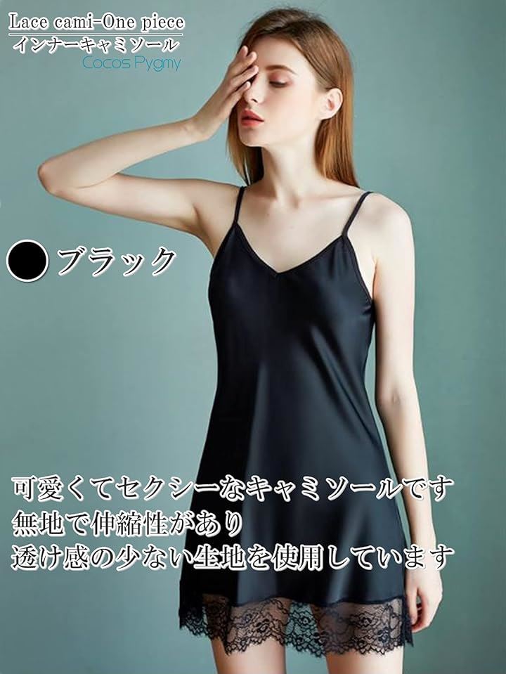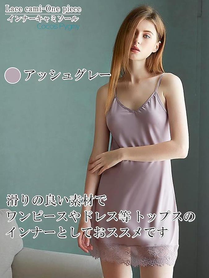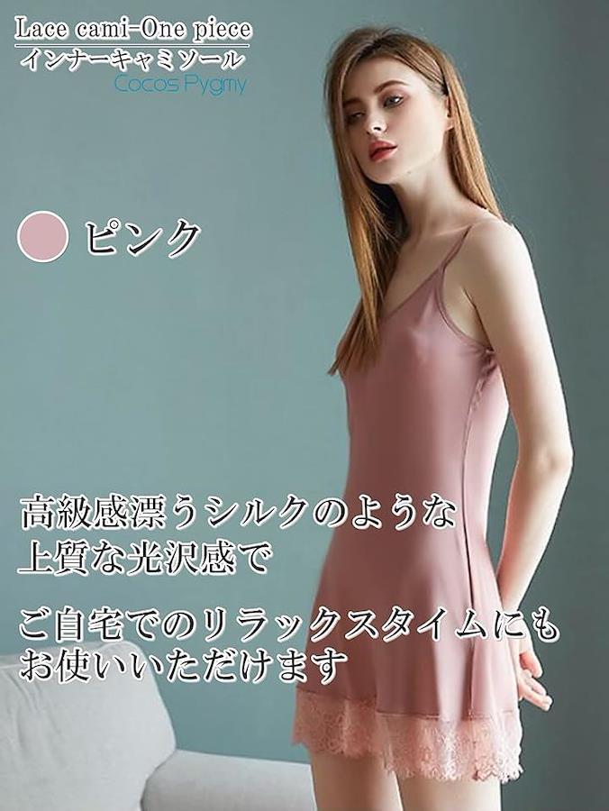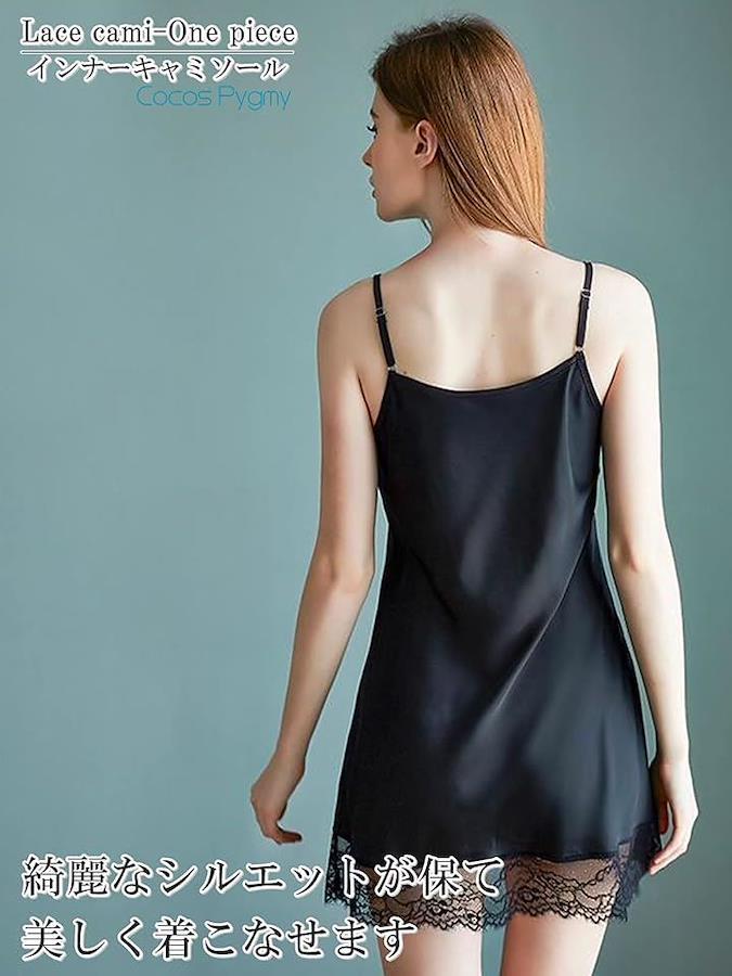 裾の部分にレースを使用しており、肩ひもは長さ調整可能です。