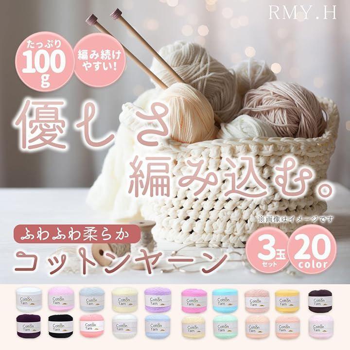 選べる20色。ふわふわ毛糸のコットンヤーン登場。100g3ロールセット。