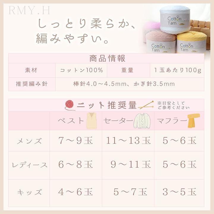 「サイズ」100g 3玉セット 「推奨編み針」棒針 4~4.5mm かぎ針 3.5mm