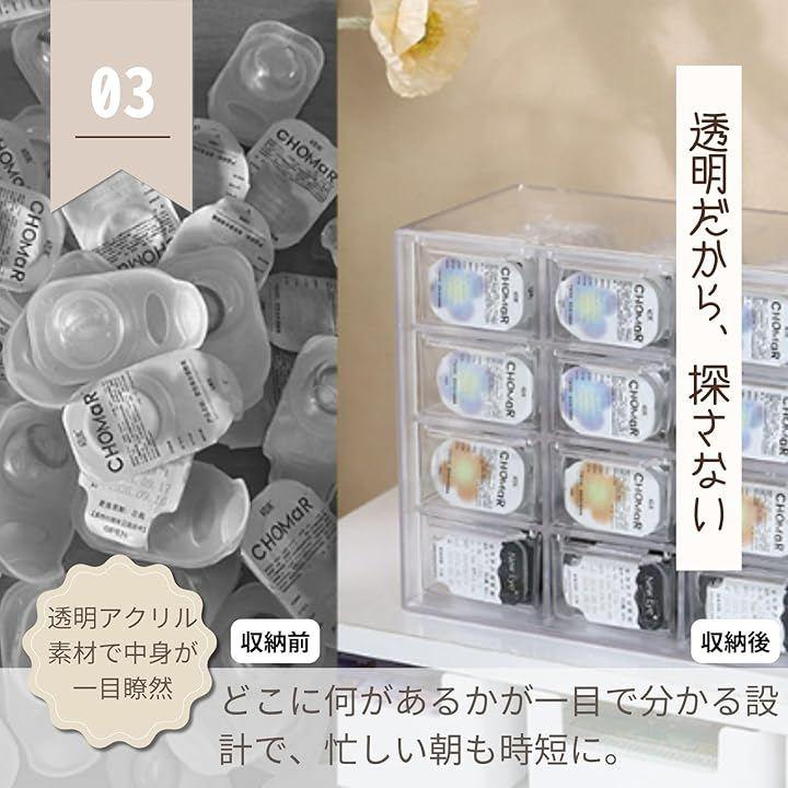「透明アクリル素材で中身が一目瞭然」高い透明度で収納状況がすぐに確認可能。