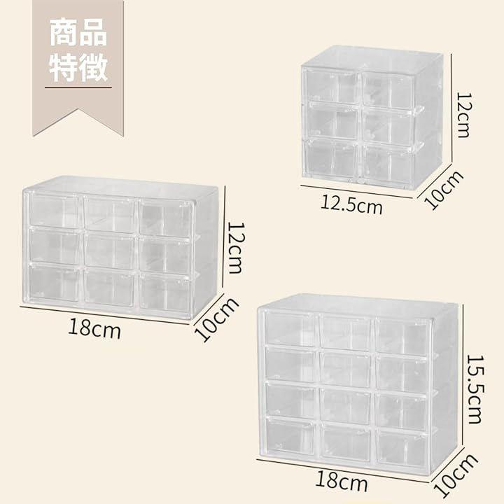 プロ仕様の分類設計で、細かい小物やネイル用品などにも応用可能。