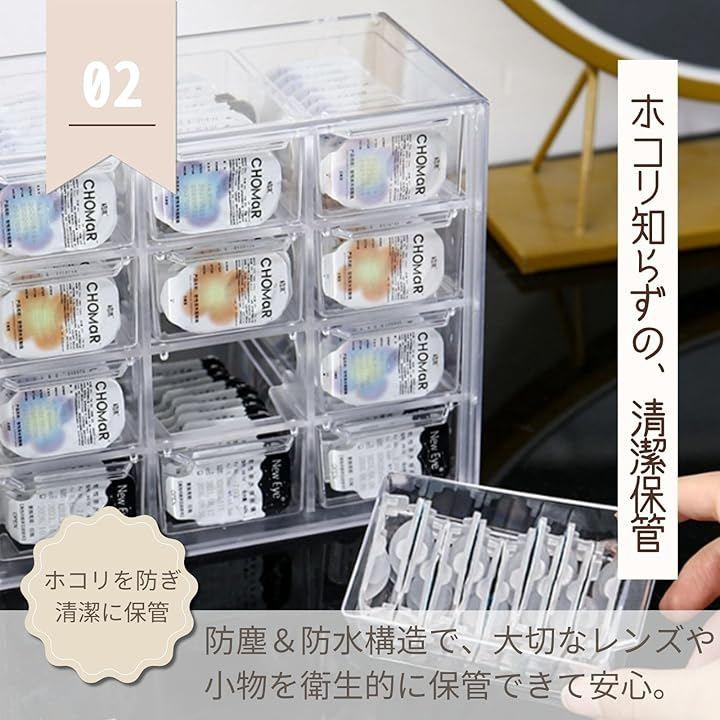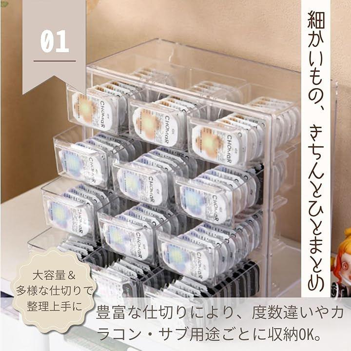 「大容量&多様な仕切りで整理上手に」豊富な仕切りにより、度数違いやカラコン・サブ用途ごとに分けて収納できます。