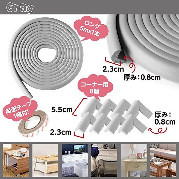 コーナークッション:5mx2.3cmx0.8cm,コーナーガード:5.5cmx2.3cmx0.8cm、邪魔にならずクッション性のある最適サイズになっています。