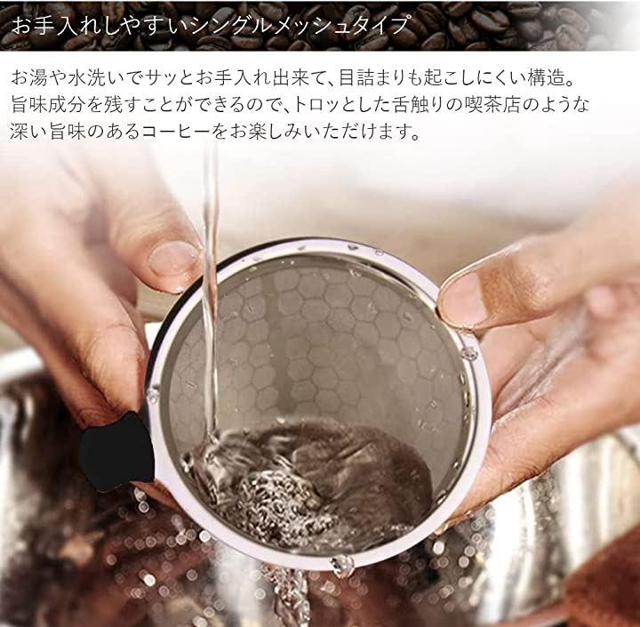 ・「コーヒー本来の味を楽しめる」2層メッシュの蜂窩状のフィルター穴なので、普通のコーヒードリッパーよりメッシュが細かく、熱伝導がいいのでコーヒーの温度を一定にすることでコーヒー本来の味を引き出します。