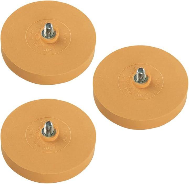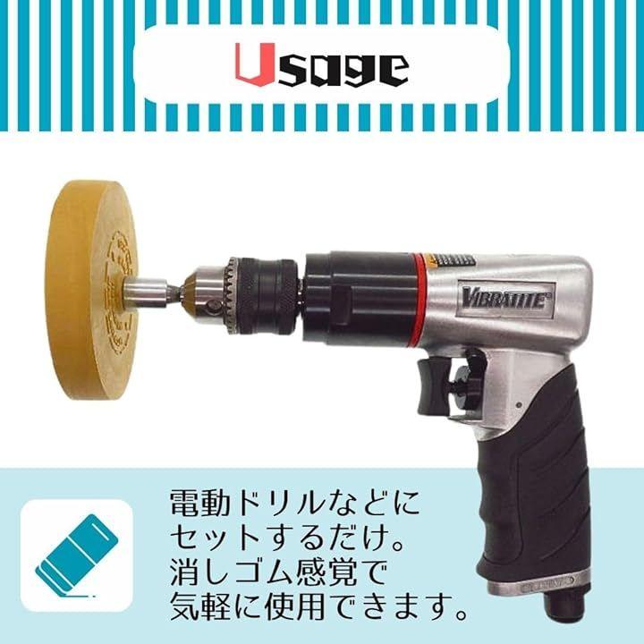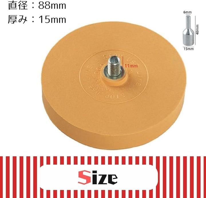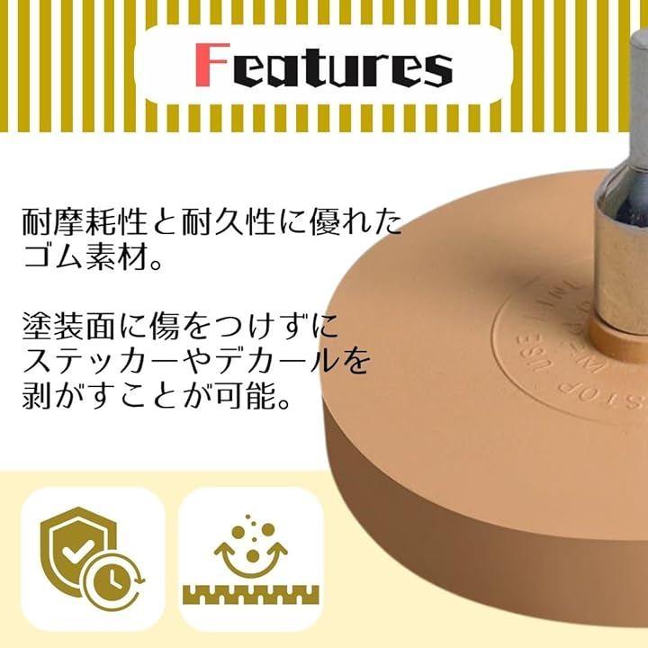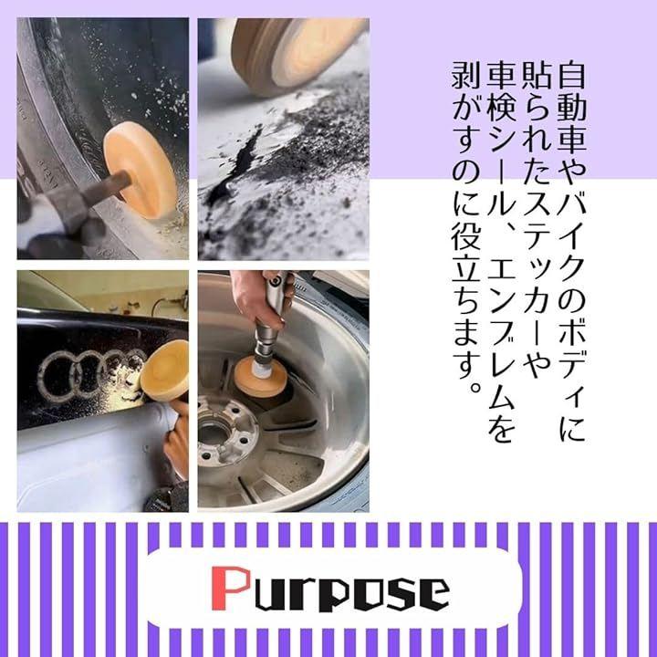「簡単シール剥がし」電動ドリルに取り付けて使用することで、車検シールやステッカー、両面テープの粘着残りを効率よく除去。