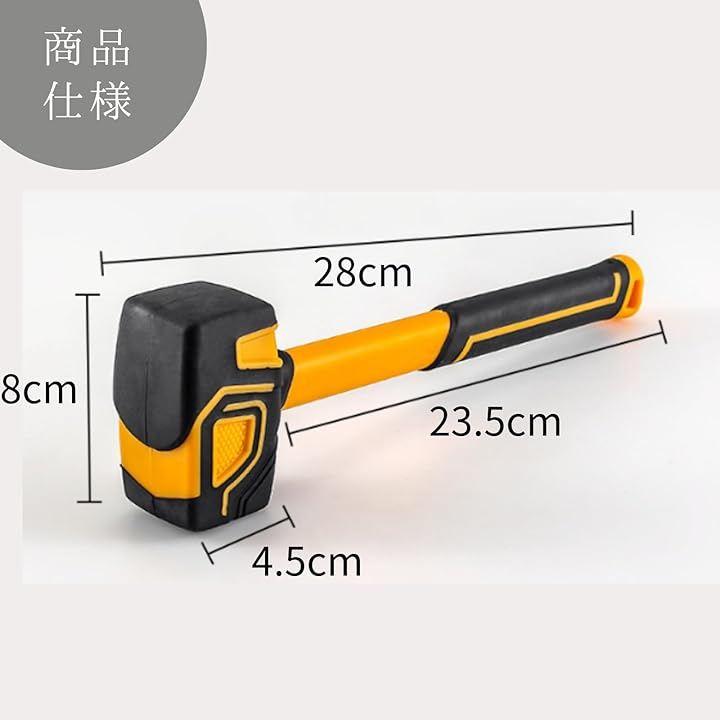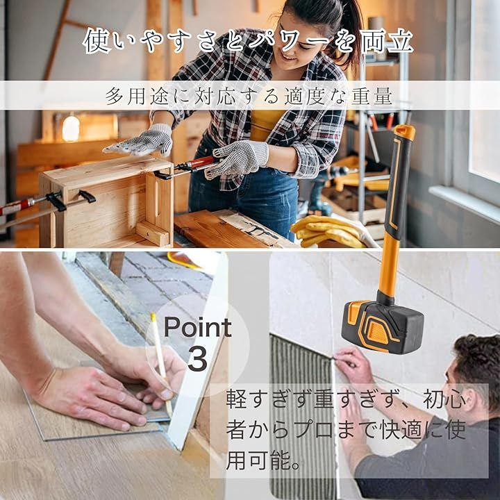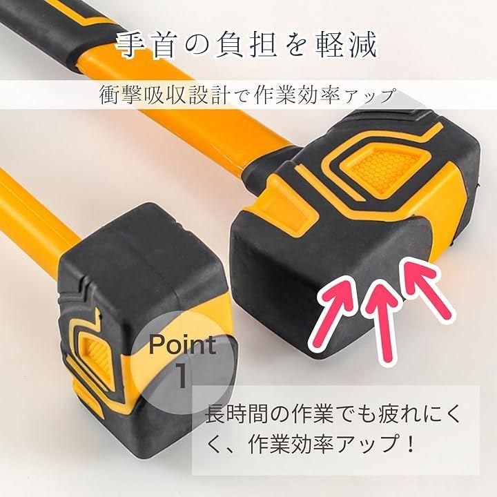 「衝撃吸収設計で作業効率アップ」内部にPVC素材を使用し、外側を高品質のゴムで覆った構造により、打撃時の反発を抑制。
