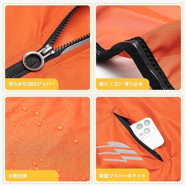 「機能仕様」軽量で携帯しやすい防風のロードバイク用ウインドブレーカー。