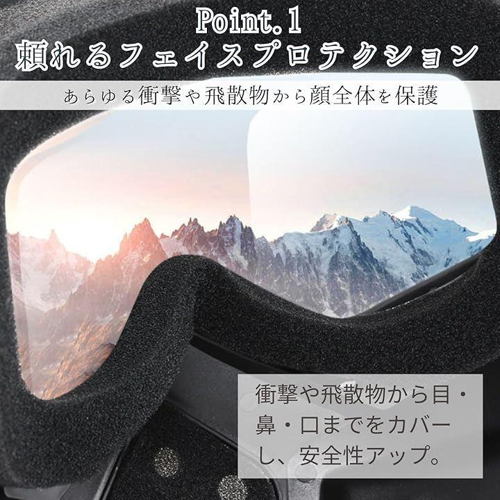 「あらゆる衝撃や飛散物から顔全体を保護」危険から顔を守ることで、怪我のリスクを大幅に軽減します。