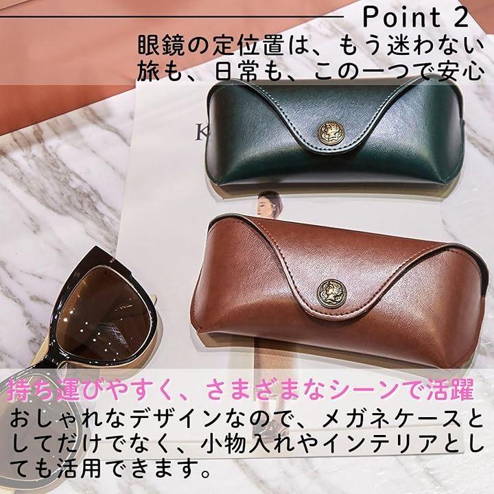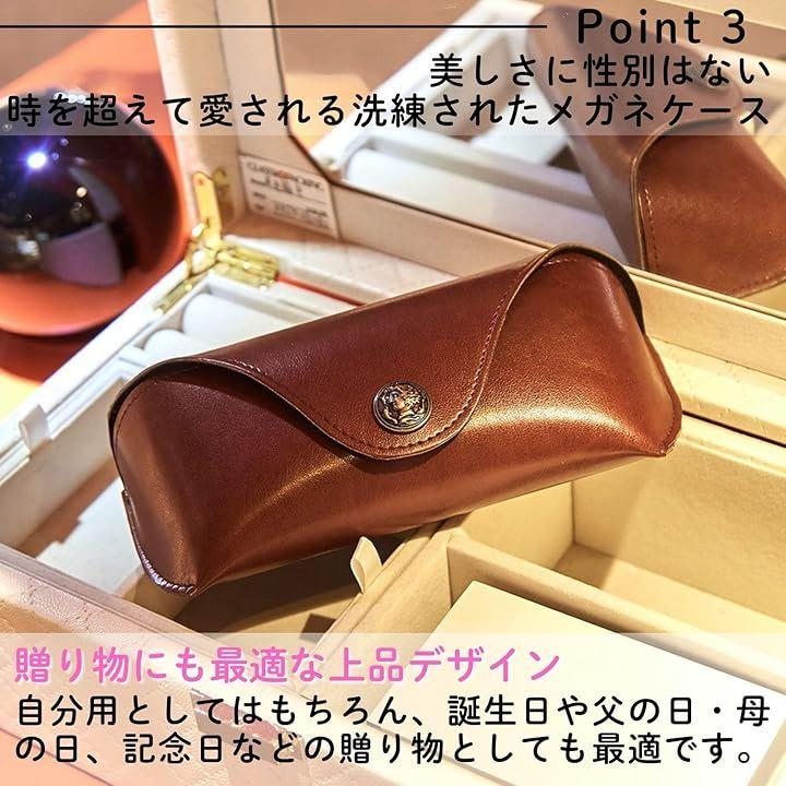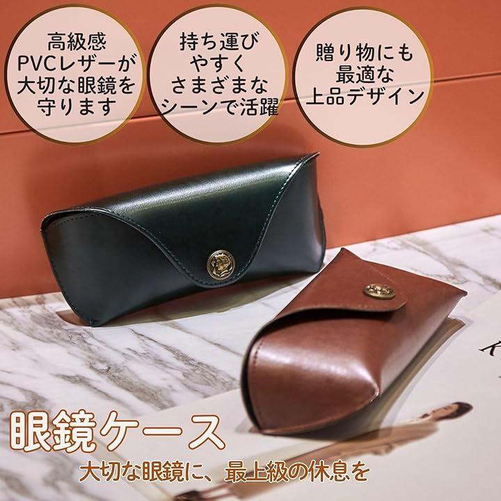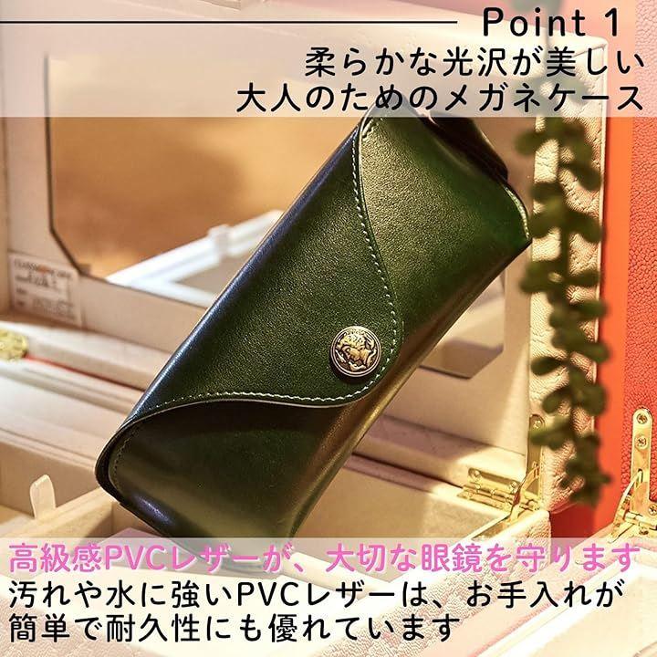「高級感あふれるPVCレザーで、大切な眼鏡を美しく保護」柔らかな手触りと光沢感のあるPVCレザーを採用。