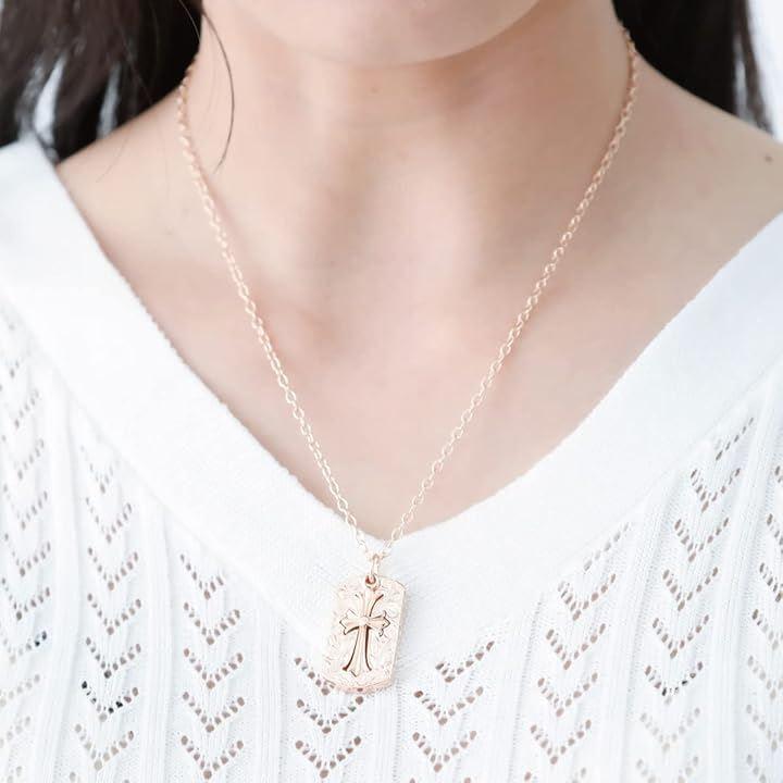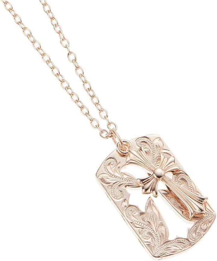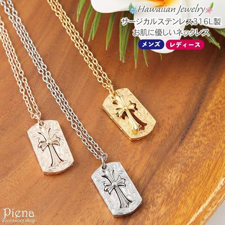 チェーン長さ S:約45cm(40cmに調節可能) L:約50cm(45cmに調節可能) チェーン太さ:約2.5mm 繊細なハワイアン柄がほどこされたドッグタグ型のプレートとクロスチャームが重なったネックレスです。