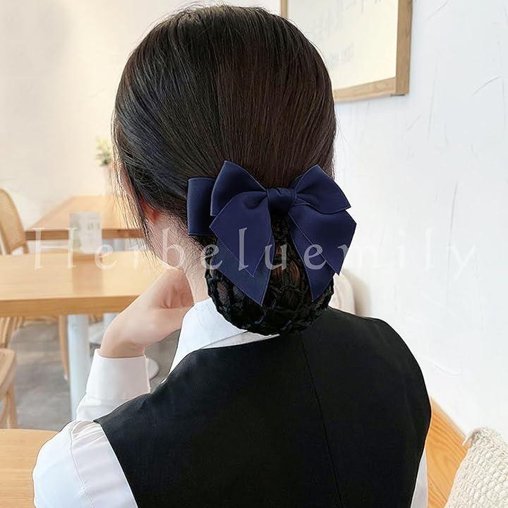 髪を包み込みまとめてくれるお団子ネットと、リボンバレッタがセットになったシニヨンネットです。