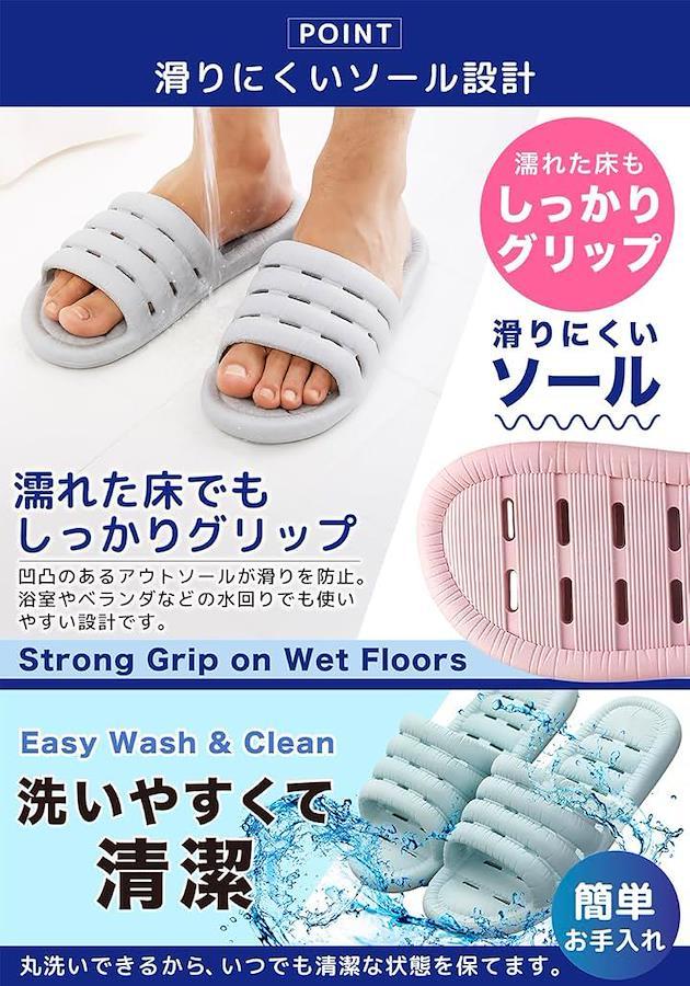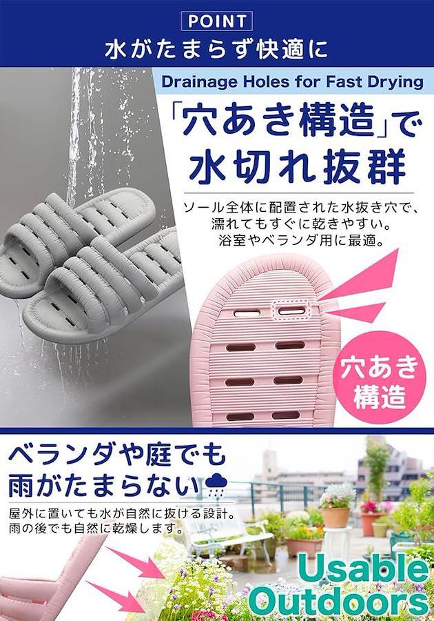 濡れてもすぐに水が抜け、スリッパ本体も乾きやすい設計。