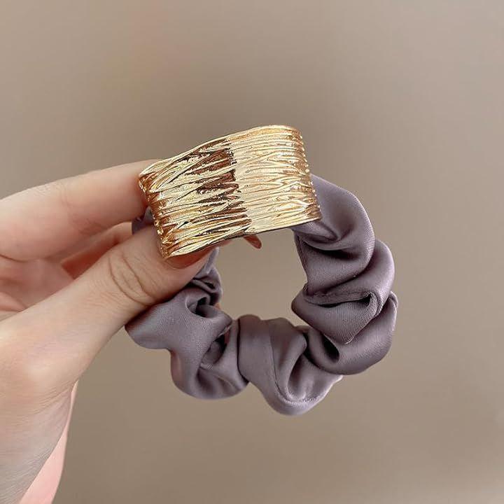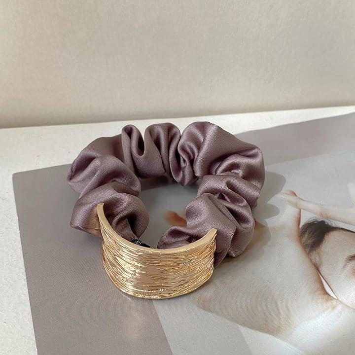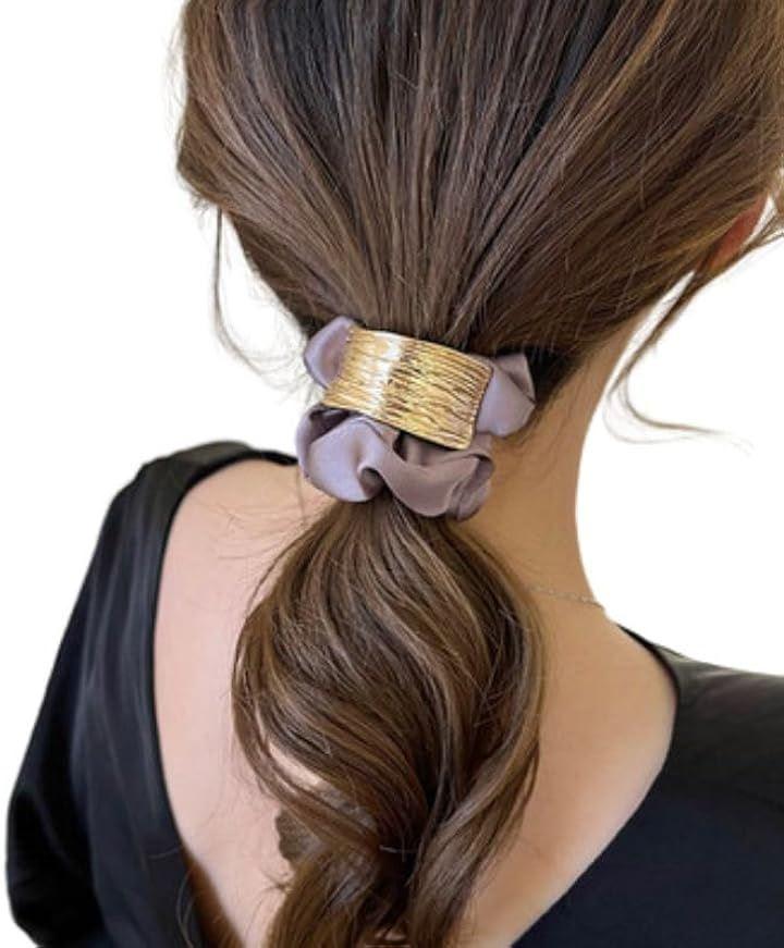 定番のシュシュも女性らしい光沢のあるサテン生地で、ぐっとエレガントな印象に。