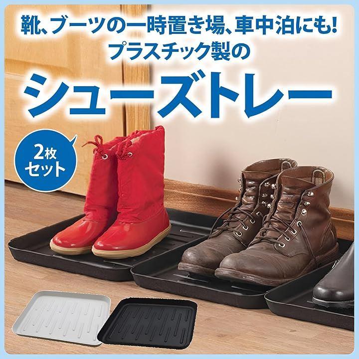 靴、ブーツの一時置き場、車中泊にも。プラスチック製のシューズトレー、シューズトレイ、靴置きの2枚セットです。