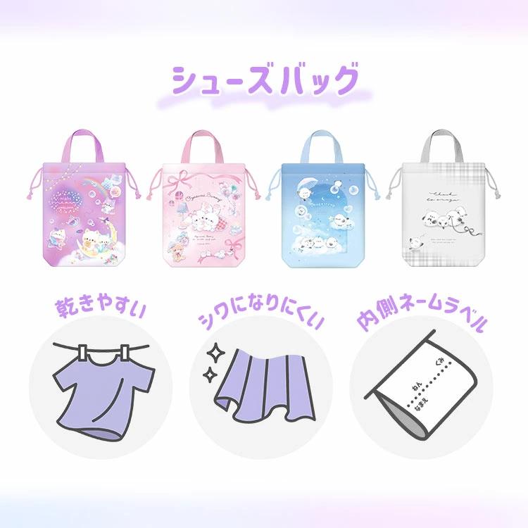 【シューズバッグ】ファンシーなイラストがとってもキュートなシューズバッグ。さらっとしたポリエステル素材で、乾きやすくシワになりにくいのが嬉しいポイント。内側にはネームラベル付きで、紛失防止にも役立ちます◎22.5cmのシューズもすっぽり入る大きさです。新入学・新学期の準備や買い替えにおすすめです。