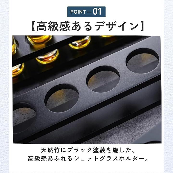「高級感あるデザイン」天然竹にブラック塗装を施した、高級感あふれるショットグラスホルダー。