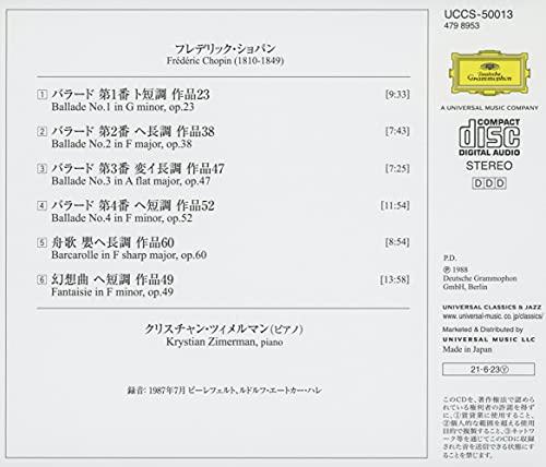 ショパン:1. バラード第1番 ト短調 作品232. バラード第2番 ヘ長調 作品383. バラード第3番 変イ長調 作品474. バラード第4番 ト短調 作品235. 舟歌 嬰ヘ長調 作品606. 幻想曲 ヘ短調 作品49