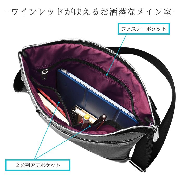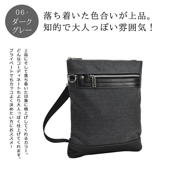 ◆ 知的でカッコよく決まる大人のメンズカジュアルシリーズの薄マチショルダーバッグ!◆ 消臭・抗菌効果のあるデオドラントネームでバッグの中をいつも清潔にします!◆ スマートフォンや財布など、日常的に使う小物もすっぽり入る便利サイズ。◆ メインルームは大きく開いて見やすく、ワインレッドが映える内装!◆ 街持ち、習い事、レジャー、旅行など、どんなシーンでも大活躍!◆ 薄マチなので斜め掛けにした際に体にフィットして動きやすい!◆ カラーは、どんなコーディネートも上品に決まる「ダークグレー」。