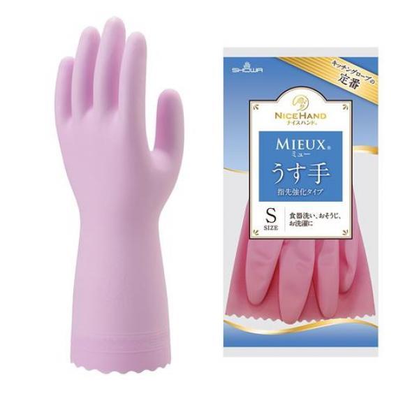 製品の特徴●ショーワグローブ ナイスハンドミューうす手 指先強化タイプ●キッチン作業用手袋の定番 「NICE HAND MIEUX」シリーズ。●手にフィットして指先感覚が活かせる薄手タイプです。●手袋内面を特殊被膜でコーティングし、ぬぎはめしやすいスリップオン加工を施しています。●傷つきやすい指先をダブルコーティングしています。●裾部分を厚めに加工することにより、持ちやすく、はめやすくしています。●独自のスベリ止め加工により、高いスベリ止め効果を発揮します。