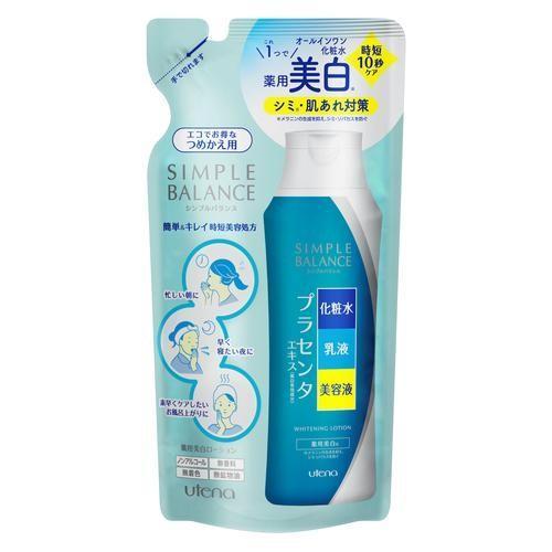 【ご注意】・お肌に異常が生じていないかよく注意して使用してください。・傷、はれもの、湿疹等、異常のある時は使わないでください。・使用中や使用後日光にあたって、赤み、はれ、かゆみ、刺激、色抜け(白斑等)や黒ずみ等の異常があらわれた時は使用をやめ、皮フ科専門医等へご相談をおすすめします。使用を続けますと悪化する事があります。・目に入った時は直ちに洗い流してください。・乳幼児の手の届かない所に置いてください。・極端に高温又は、低温の場所、直射日光のあたる場所には置かないでください。・シンプルバランス薬用美白ローションの使用済みボトルにつめかえてください。