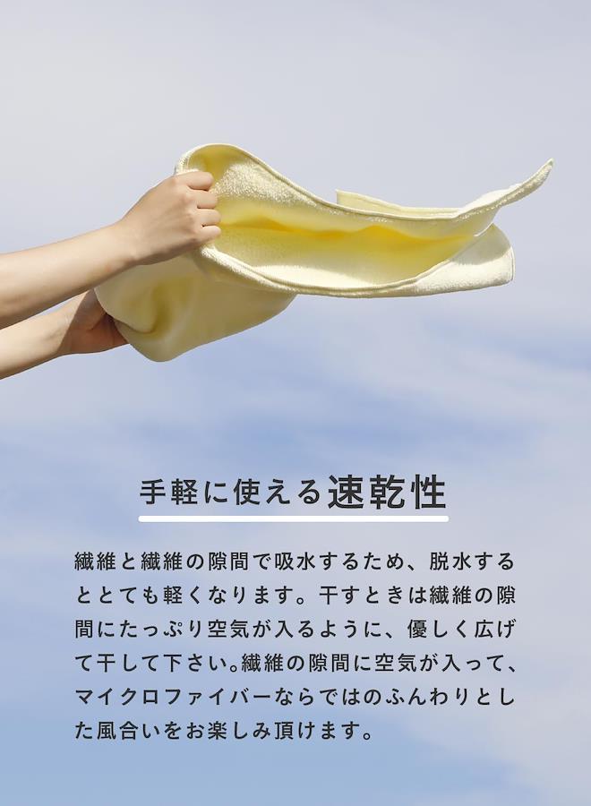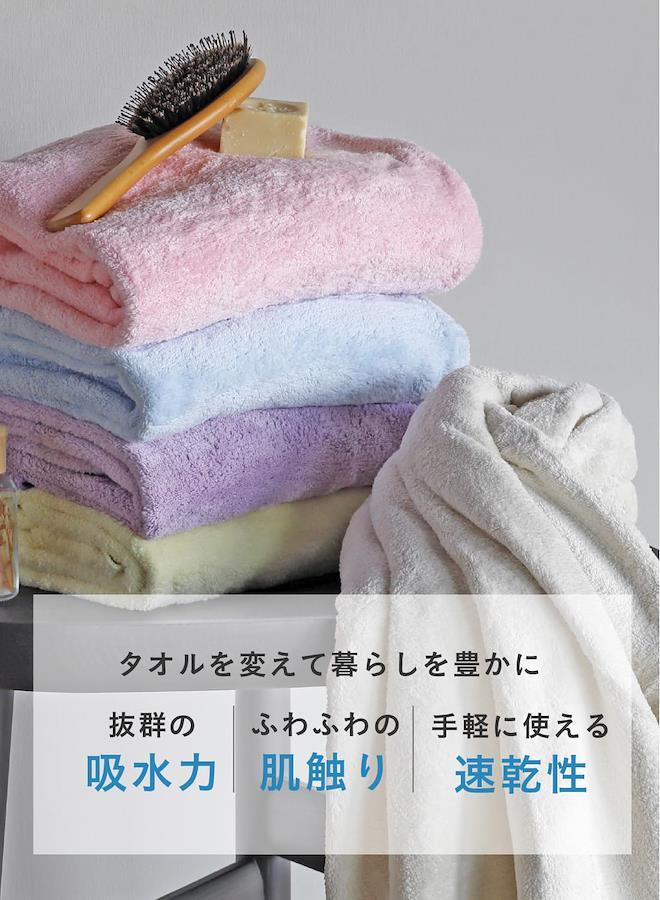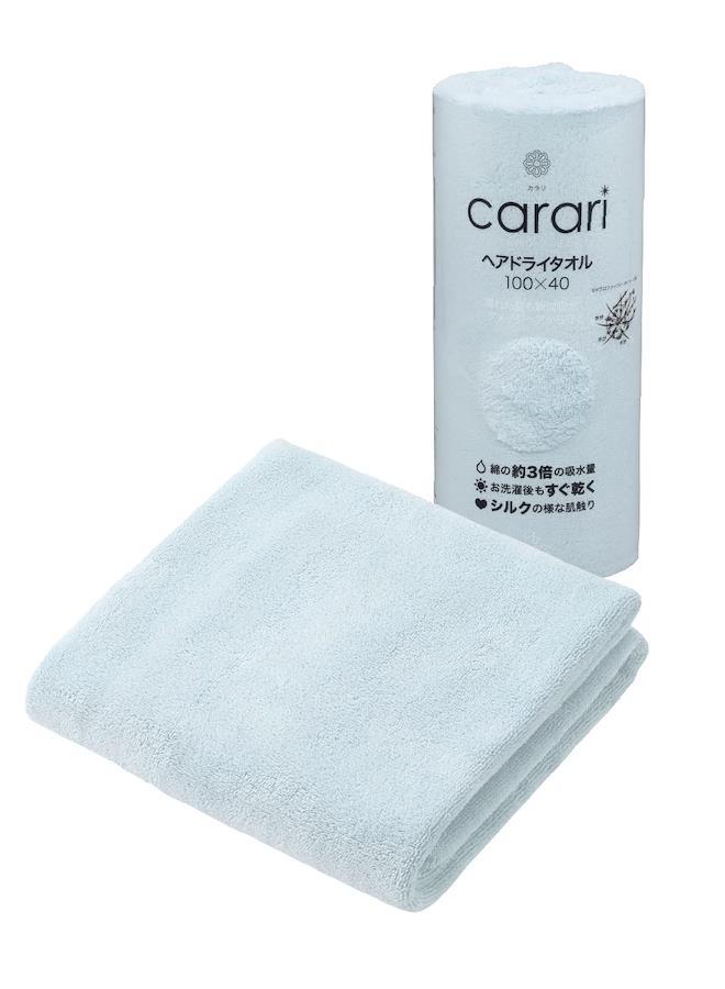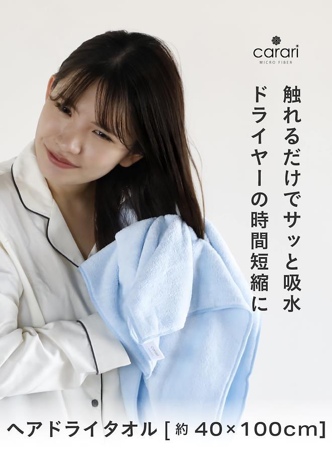 3営業日以内に発送≪新品未開封品≫:優れた吸水力と抜群の速乾性、そしてマシュマロのようなふわふわの肌触りまで叶えたマイクロファイバータオル。日常に欠かせないタオルだからこそ使い心地にこだわったcarari(カラリ)シリーズのタオル濡れた髪に軽く押し当てるだけで水分を吸収してくれるので、摩擦を減らしてダメージの軽減にも繋がります。ロングヘアの方のヘアドライはもちろん小さめのバスタオルとしても使えます【驚きの吸水力】水に触れた瞬間、サッと吸水してくれます。その吸水力はなんと綿のタオルの約3倍!マイクロファイバー繊維の毛細管現象によって、水分を素早く吸収します【抜群の速乾性】マイクロファイバーは、1本1本が放射線状の三角断面形状で無数の隙間を持っています。通気性に優れた繊維なので、高い速乾性を発揮します。洗濯物の乾きにくい時期にも快適にお使いいただけます【やさしい肌触り】通常織りあがったタオルは両面ともパイル状になっているため、引っかかりやすい。carariのタオルは表面を刈り取っているため、引っかかりにくく、上質で滑らかな肌触りに仕上げていますドライヤー時間の短縮で省エネ効果も