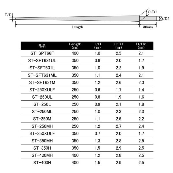 カーボンソリッドティップロッドを手軽にチューニングできるソリッドティップパーツ。折れたロッドの修理はもちろん、ソリッドティップ化するカスタムにも使えるので、組み合わせによって従来のロッドにないセッティングが出来て釣りの幅が広がります。カラー:無塗装 長さ:400mm 重さ:1g 先径 T/D:1mm 元径 O/D1:2.5mm 元径 O/D2:2.1mm ※実物と色が違って見える場合があります。あらかじめご了承下さい。