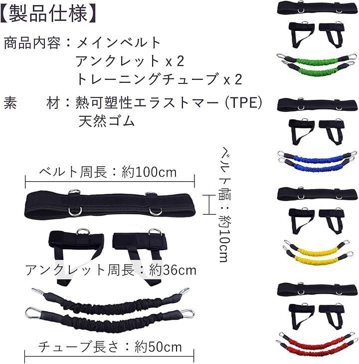 「製品内容」主帯x1、脚環x2、ベルト引張り管x2、収納袋x1、製品材質:TPE、包装方式:束ポケット布包