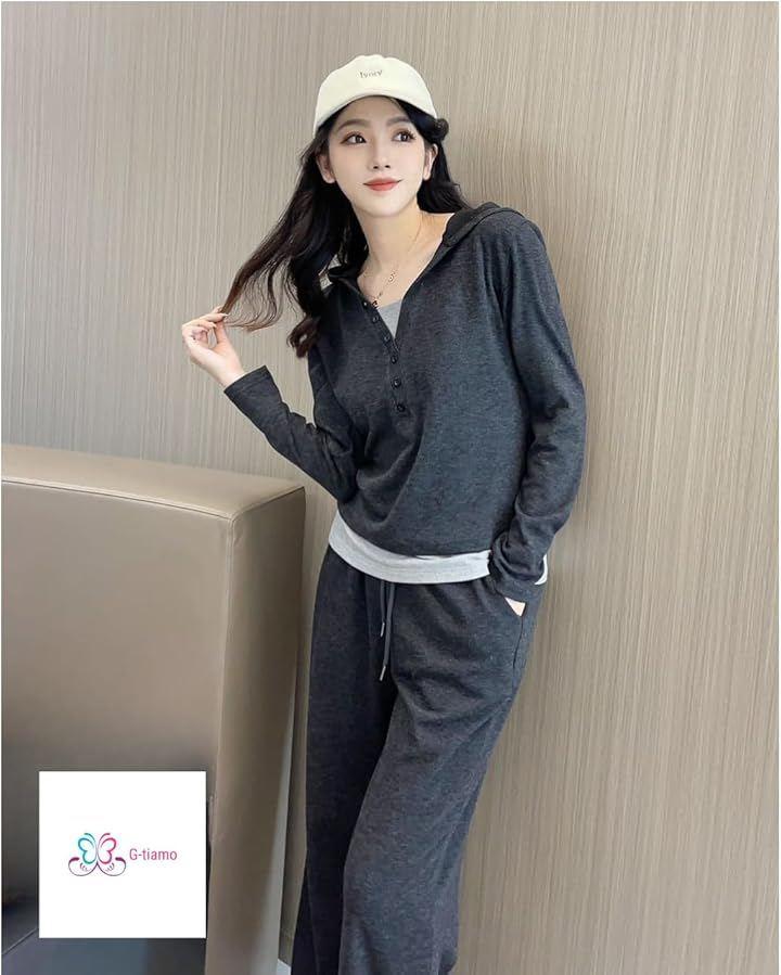 フード付ききれいめリラックスウェア