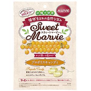 ■商品の特徴・「甘味」と「うまみ」の両方を楽しめるキャンディです。植物生まれの甘味料『マービー』の自然な甘さをいっそう引き出すように工夫しました。・プロポリス配合でのどにやさしい。