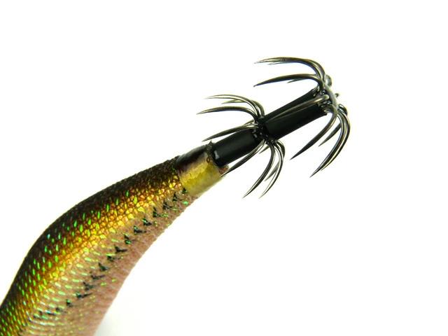 イカが抱きやすいフォール姿勢の約45度で、1mを約4秒の沈降速度。ボディの空気量を多くしてるので、沈下姿勢が安定した状態で、ゆっくりと沈んでいきます。ほ、セミオートマチックで、烏賊が抱きやすくなるように考えて作ってるので、3回シャクってフリーフォールで、簡単に抱いてきます。もちろん初心者から上級者まで使えますので、慣れてくればエギを自由自在に動かすことが出来ます。