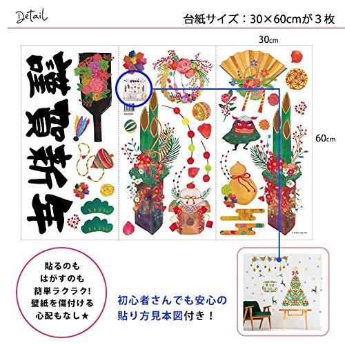 ■商品名スクウェアショップ ウォールステッカー 正月飾り 30cm×60cm×3枚 mws0304 お正月 謹賀新年 門松 しめ縄 鏡餅 花 かわいい 装飾 飾りつけ