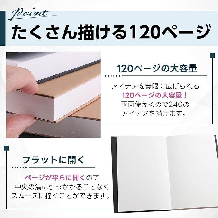 「 180度フラットに開く、描きやすさへのこだわり 」 どのページもフラット(平ら)に開くことができます。