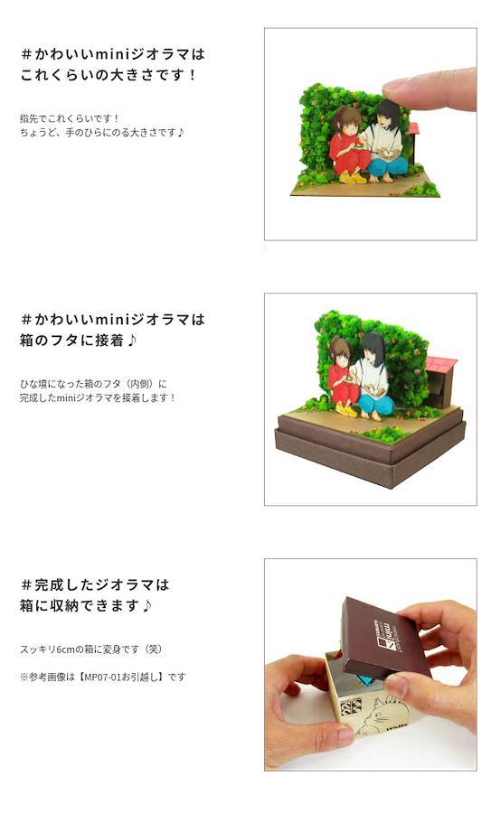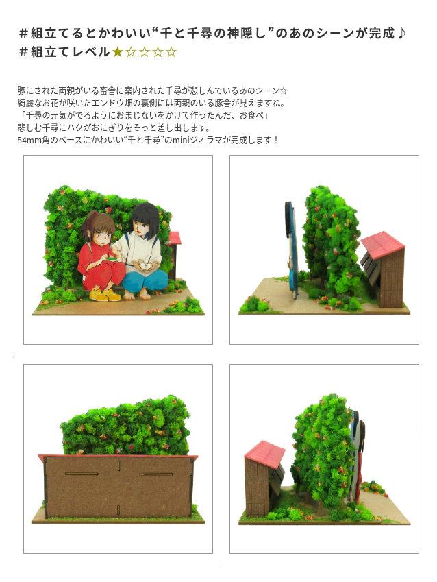 スタジオジブリminiは1辺6cmの箱の上に小さなジオラマが作れるペーパーキットです♪完成すると「千と千尋の神隠し」の世界がコマ送りのようにお楽しみいただけます☆ ※こちらの商品は組立てペーパーキットです。完成品ではございませんのでご注意ください。■商品名 スタジオジブリmini 千と千尋の神隠し ハクのおにぎり■コピーライト © 2001 Studio Ghibli - NDDTM Ghibli - NH■セット内容 レーザーシートA~M(13枚)、 ベース(1枚)、スポンジ、パウダー、色砂、組み立て説明書■スケール Non-scale■サイズ W60×D60×H60(106)mm ※内はジオラマを乗せた時の寸法です■対象年齢 12才以上■組立て所要時間 2時間~■組立てレベル ★☆☆☆☆■みにちゅあーとキットとは? ミニチュア制作の経験のない方でも、扱いやすい“紙” 素材で出来たECOペーパーキットです。製作道具はカッターナイフ、ピンセット、接着剤、定規、カラーペンなどがあれば作れますよ~♪