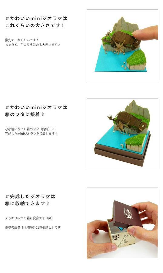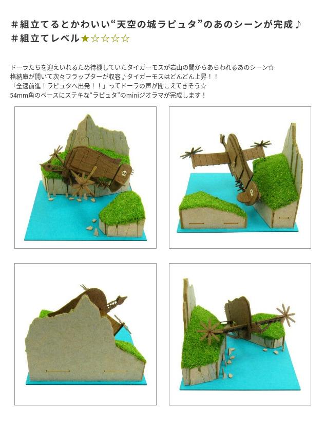 スタジオジブリminiは1辺6cmの箱の上に小さなジオラマが作れるペーパーキットです♪完成すると「天空の城ラピュタ」の世界がコマ送りのようにお楽しみいただけます☆ ※こちらの商品は組立てペーパーキットです。完成品ではございませんのでご注意ください。■商品名 スタジオジブリmini 天空の城ラピュタ タイガーモス発進■コピーライト © 1986 Studio Ghibli■セット内容 レーザーシートA~K(11枚)、パウダー、ベース(1枚)、組み立て説明書■スケール Non-scale■サイズ W60×D60×H60(106)mm ※内はジオラマを乗せた時の寸法です■対象年齢 12才以上■組立て所要時間 2時間~■組立てレベル ★☆☆☆☆■みにちゅあーとキットとは? ミニチュア制作の経験のない方でも、扱いやすい“紙” 素材で出来たECOペーパーキットです。製作道具はカッターナイフ、ピンセット、接着剤、定規、カラーペンなどがあれば作れますよ~♪