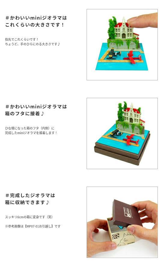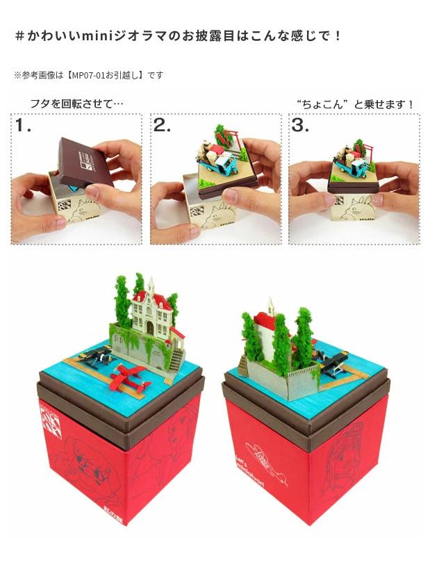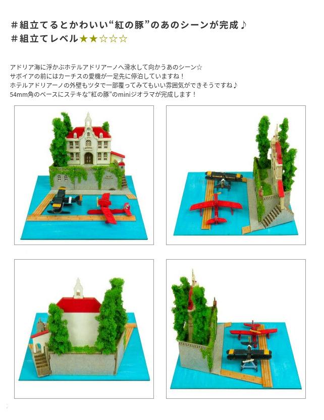 スタジオジブリminiは1辺6cmの箱の上に小さなジオラマが作れるペーパーキットです♪完成すると「紅の豚」の世界がコマ送りのようにお楽しみいただけます☆ ※こちらの商品は組立てペーパーキットです。完成品ではございませんのでご注意ください。■商品名 スタジオジブリmini 紅の豚 アドリアーノと飛行艇■コピーライト © 1992 Studio Ghibli - NN■セット内容 レーザーシートA~K(11枚)、ベース(1枚)、印刷シート(1枚)、スポンジ、パウダー、組み立て説明書■スケール Non-scale■サイズ W60×D60×H60(107)mm ※内はジオラマを乗せた時の寸法です■対象年齢 12才以上■組立て所要時間 2時間~■組立てレベル ★★☆☆☆■みにちゅあーとキットとは? ミニチュア制作の経験のない方でも、扱いやすい“紙” 素材で出来たECOペーパーキットです。製作道具はカッターナイフ、ピンセット、接着剤、定規、カラーペンなどがあれば作れますよ~♪