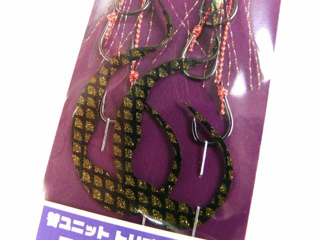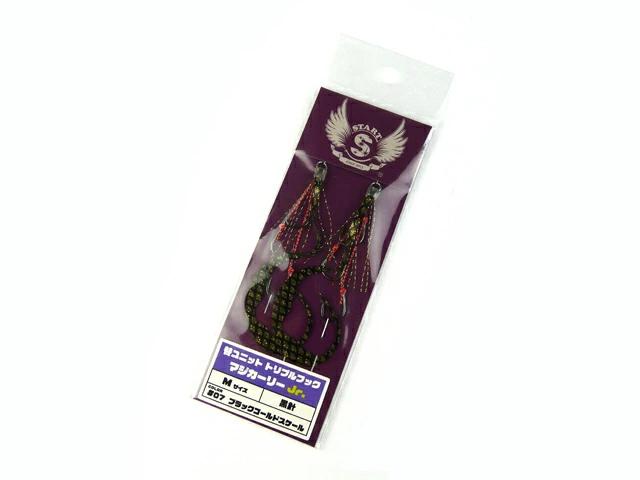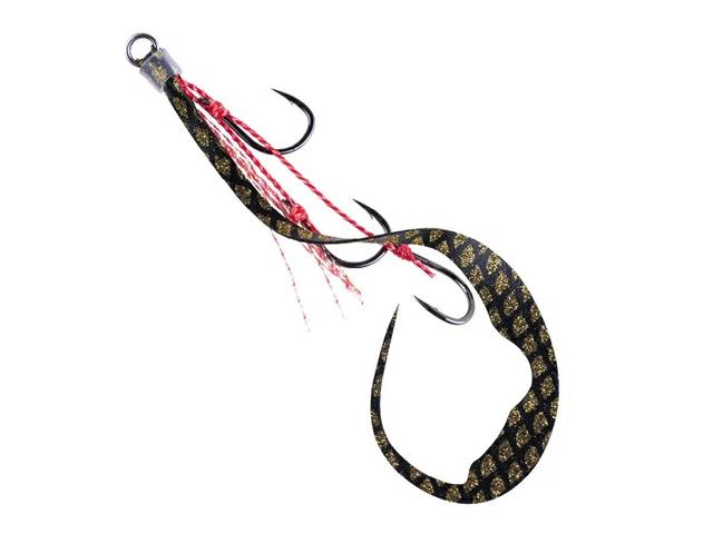 START Replacement Triple Hook Magic Curly Jr., Medium, UMCJ-07, Black Gold Scale, for Red Sea Bream, Tai Rubber, Tairaba, Tai Kabura, Casu Rubber, and Inchiku, Perfect for Boat, Offshore, and Game Fishing. Includes skirt and tie head.