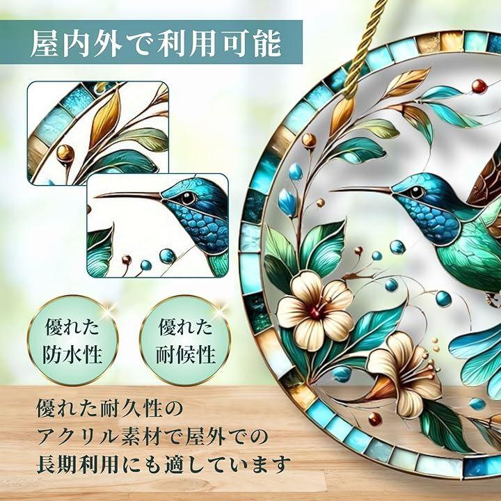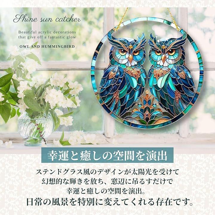 「幻想的な輝き」ステンドグラス風のデザインが太陽光を受けて幻想的な輝きを放ち、窓辺に吊るすだけで幸運と癒しの空間を演出。