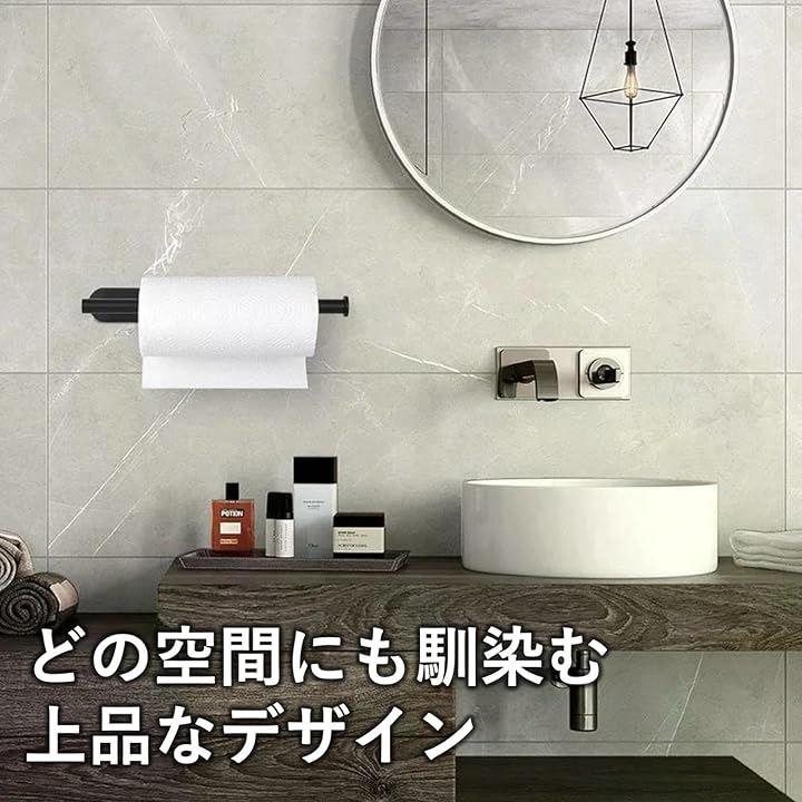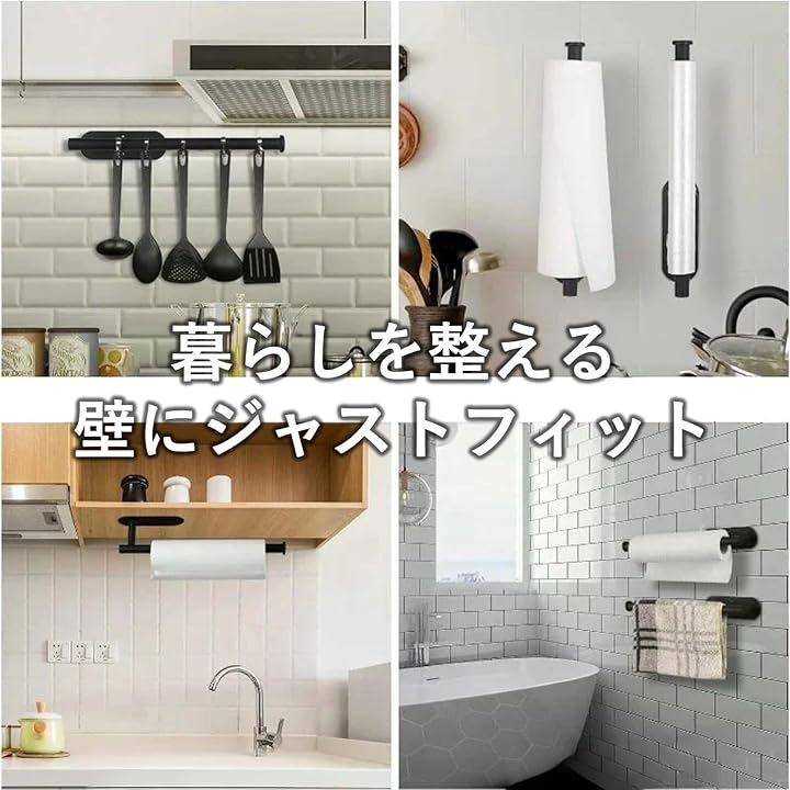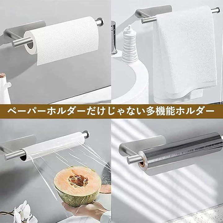 「ステンレス キッチンペーパーホルダー 穴開け不要 強力粘着 銀 黒」